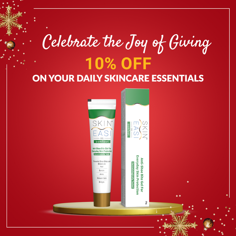 Skineasi comfoot forms a thin film of silicone within 30 seconds of its application on shoe-bite prone areas. This film, like second skin, acts as a barrier between skin and shoe or any other foot wear thus preventing shoe-bites. The thin film formed by Skineasi comfoot is invisible, long-lasting, non-allergenic, water-repellent and most importantly breathable unlike other make shift solutions. The thin film formed by Skineasi comfoot not only gives silky feel to skin but also works well in presence of water or moisture.