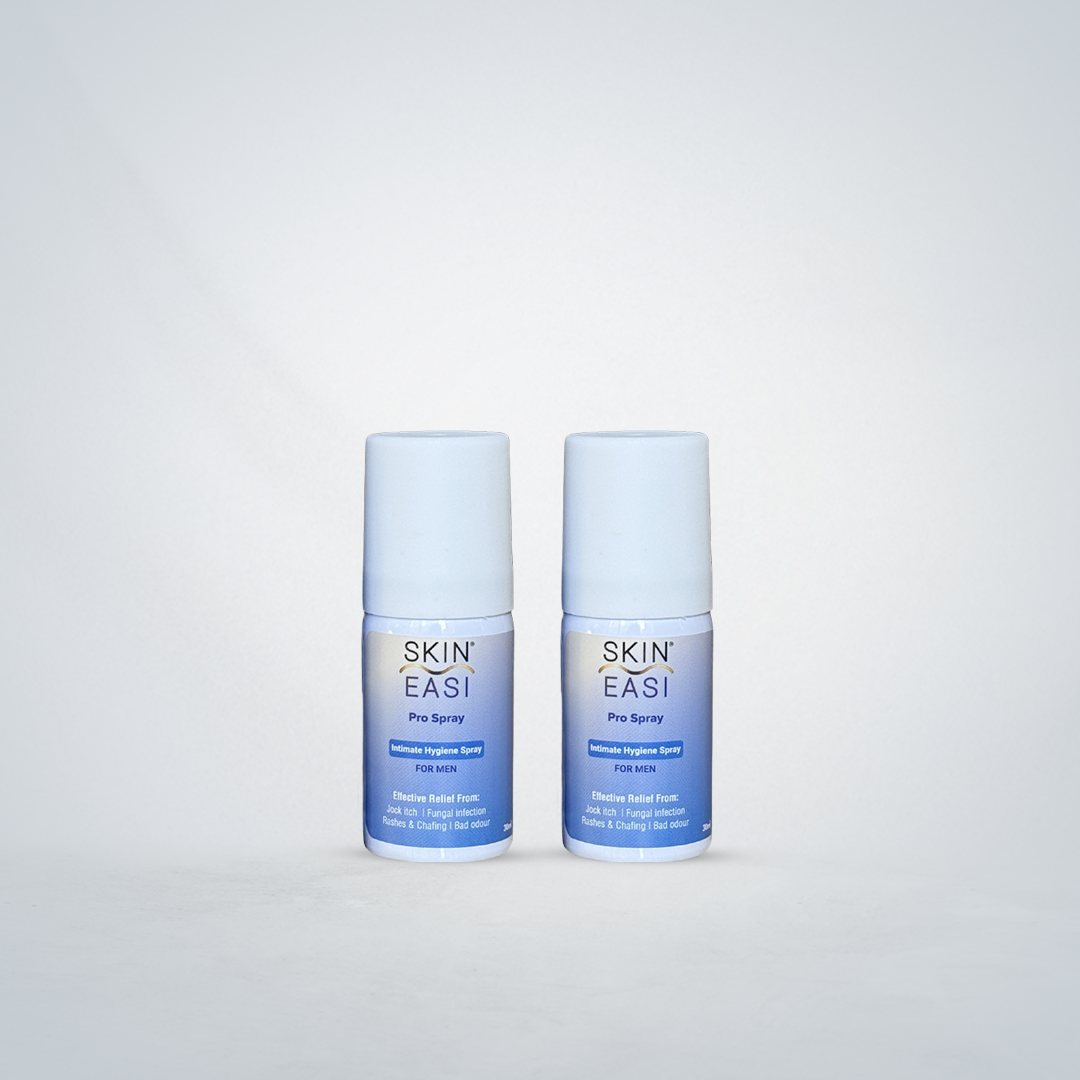 Jock itch is a fungal infection that causes itching, redness, and irritation in the groin area. SkinEasi® Pro Spray helps by reducing fungal growth, soothing irritation, and creating a dry protective barrier that prevents the infection from worsening or recurring.