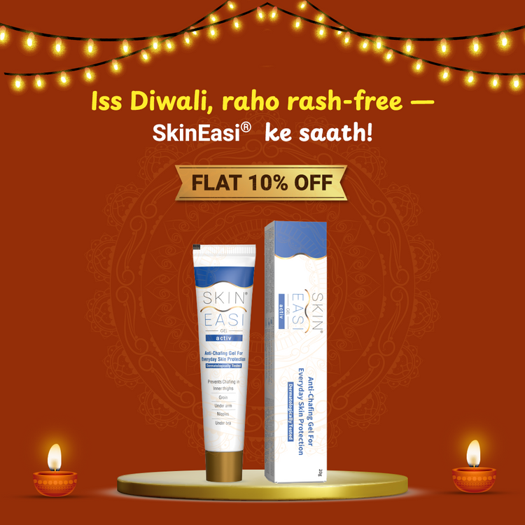 Skineasi activ forms a thin film of silicone within 30 seconds of its application on chafe prone areas. This film, like second skin, acts as a barrier between skin or skin folds or between skin and clothing thus preventing chafing. The thin film formed by Skineasi activ is invisible, long-lasting, non-allergenic, water-repellent and most importantly breathable unlike other make shift solutions. The thin film formed by Skineasi activ not only gives silky feel to skin but also works well in presence of water, sweat or moisture.